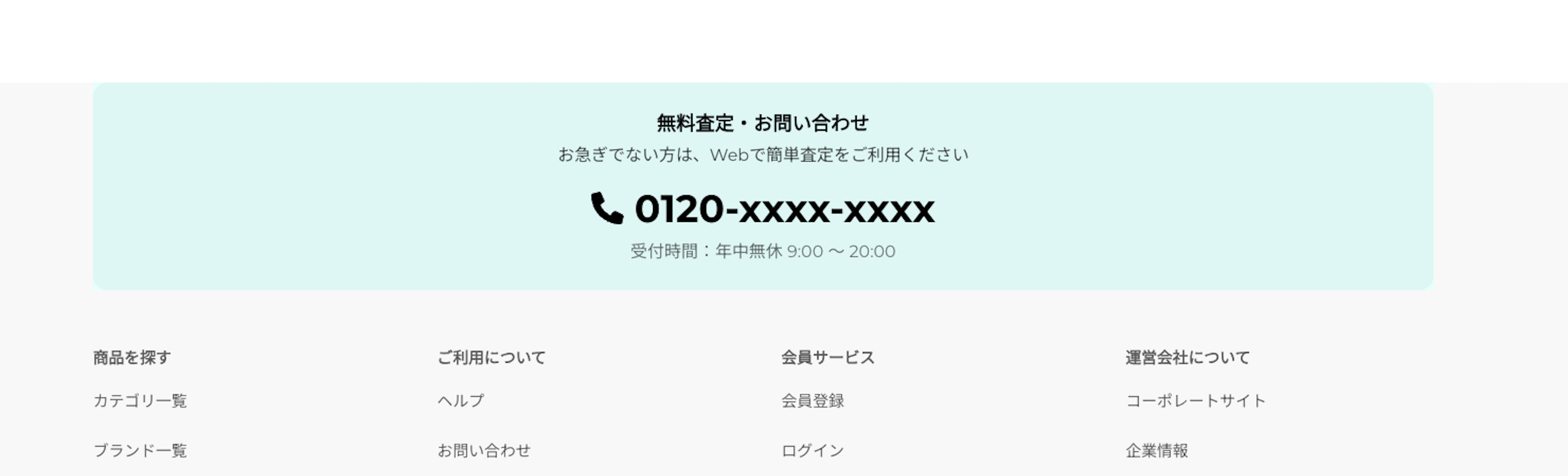 「電話案内」テンプレートは、サービスに関する問い合わせや契約・検討の相談をわかりやすく案内できるブロックです。